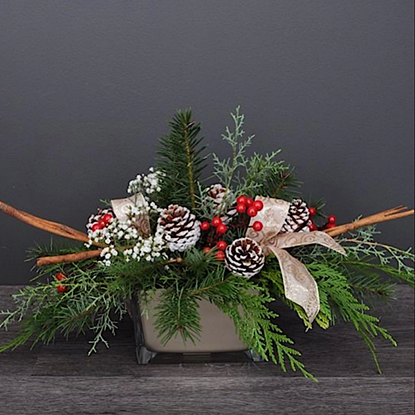 Découvrez nos arrangements de Noël créés avec soin: un mélange chaleureux de verdure fraîche, de détails dorés et d’élégance festive, prêts à illuminer votre maison pour le temps des Fêtes.